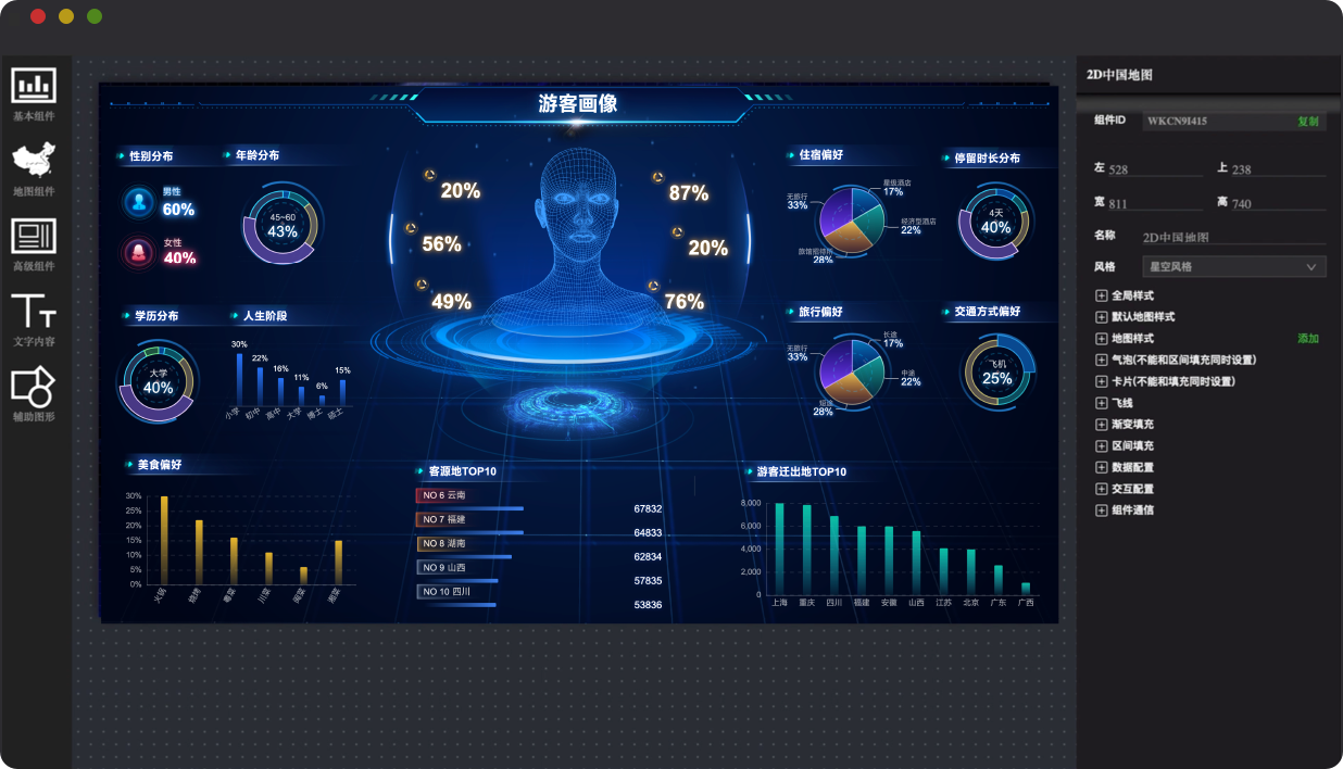 操作簡單,拖拉拽即可生成酷炫大屏;